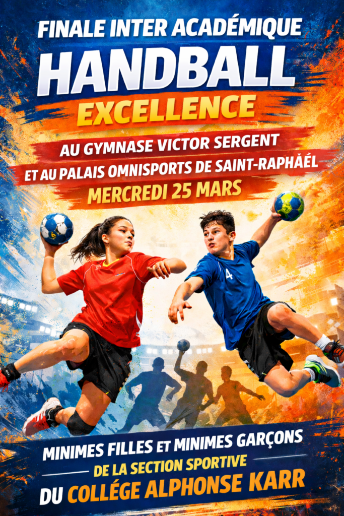 Finale interacadémique Handball Excellence pour nos 2 équipes de la Section Sportive le 25/03/2026 – Venez les encourager !