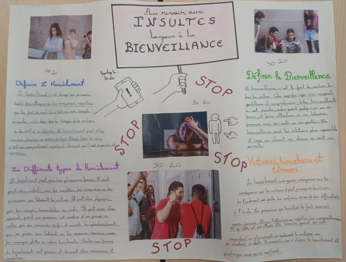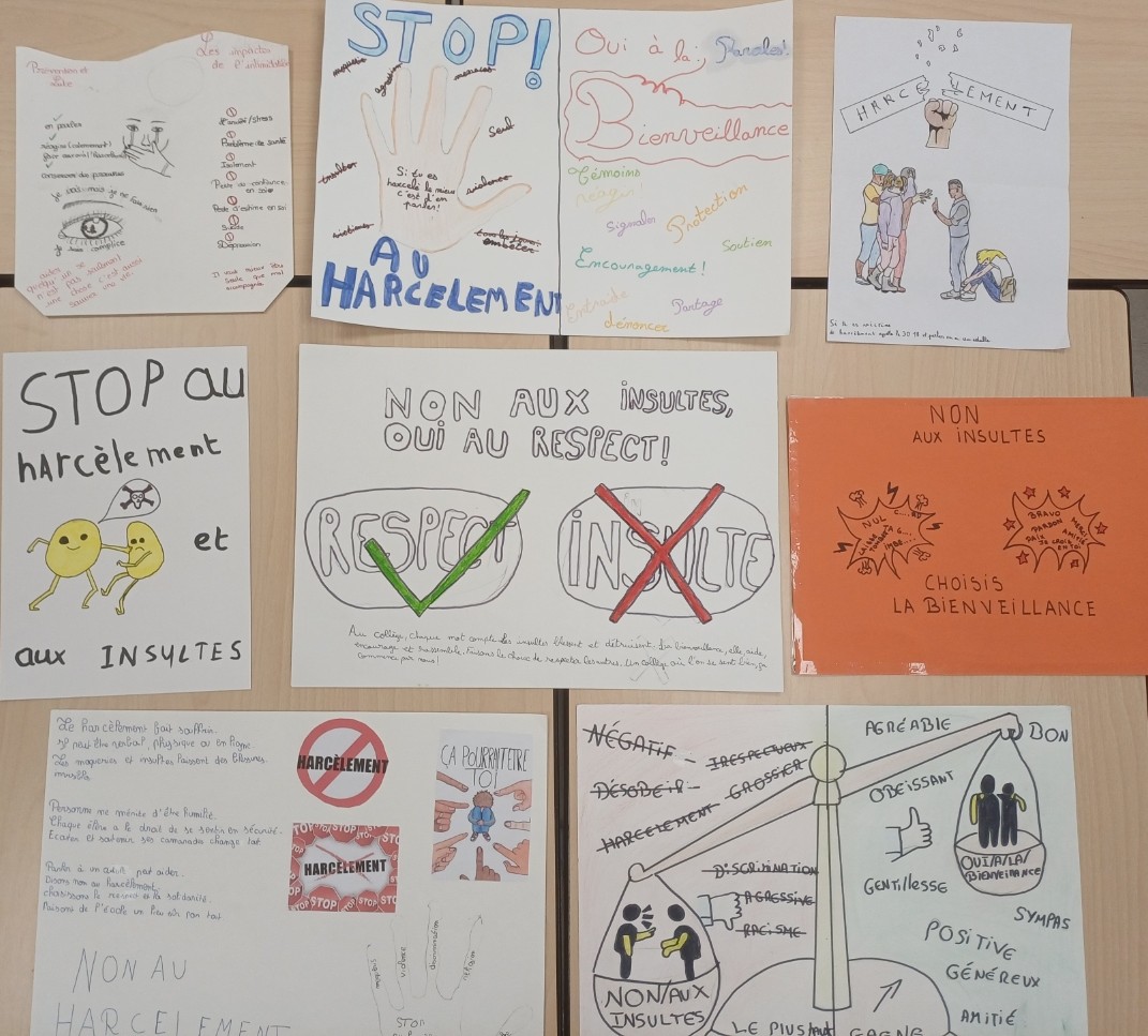 Ces affiches vont être exposées la semaine prochaine dans un couloir du collège, afin de sensibiliser tous les élèves à cette thématique.