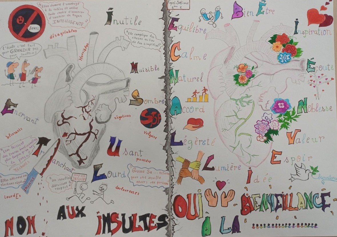 Dans le cadre des séances obligatoires d’Education à la Vie Affective Relationnelle et à la Sexualité (EVARS), toutes les classes de 5èmes ont bénéficié d’une séance de réflexion collective dédiée au climat scolaire et à la lutte contre les insultes et leurs conséquences.