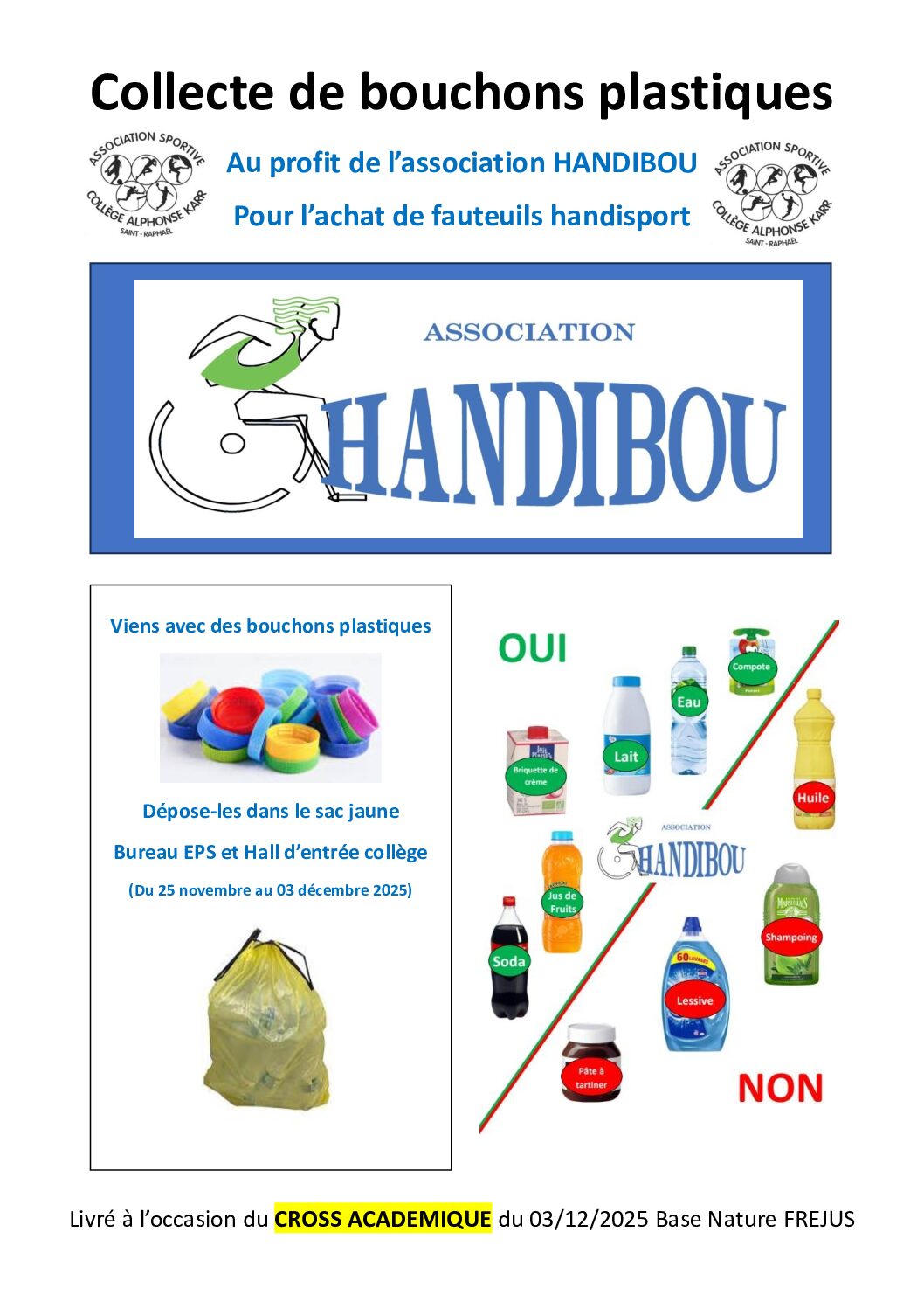 Une collectes de Bouchons plastiques est mise en place au profit de l’Association Handibou (cliquer ICI pour en savoir plus sur…