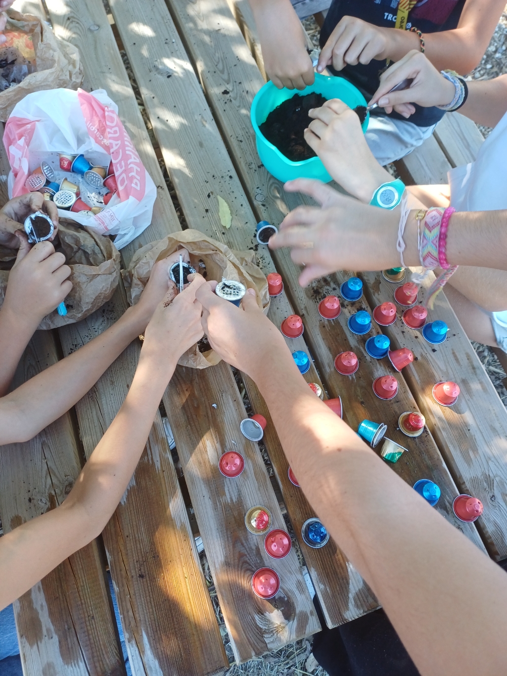 Les élèves du CVC se feront une joie, le mardi, de les vider, pour fertiliser les plantes du jardin, puis de les trier pour petit à petit amasser toutes les couleurs nécessaires pour créer, d’ici quelques mois, un grand portrait d’Olympe de Gouges, en lien avec le spectacle auquel toutes les classes de 4èmes auront la chance d’assister le 28 avril 2026 au Théâtre du Forum.